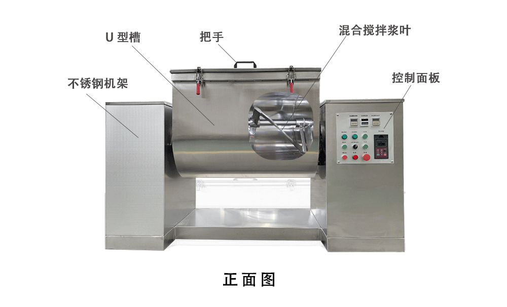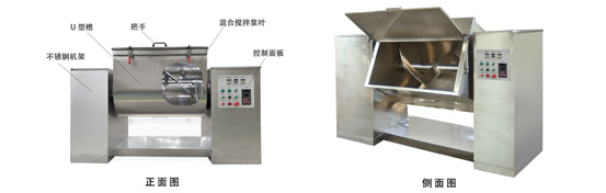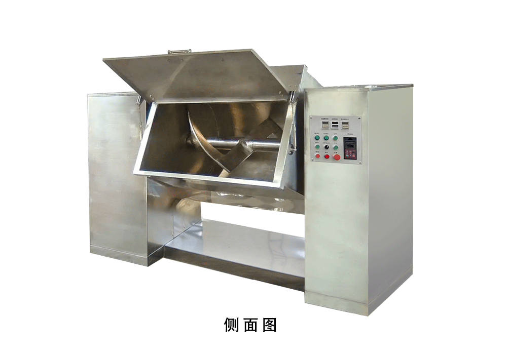 槽式混合機的工作原理主要是通過混合機的攪拌作用,使兩種或兩種以上的物料在桶槽內充分混合。當待混合物料進入槽體后,混合機開始工作,將混合的固體粉末分散成其他粉末,形成渦流,從而促進各種物料的充分混合。