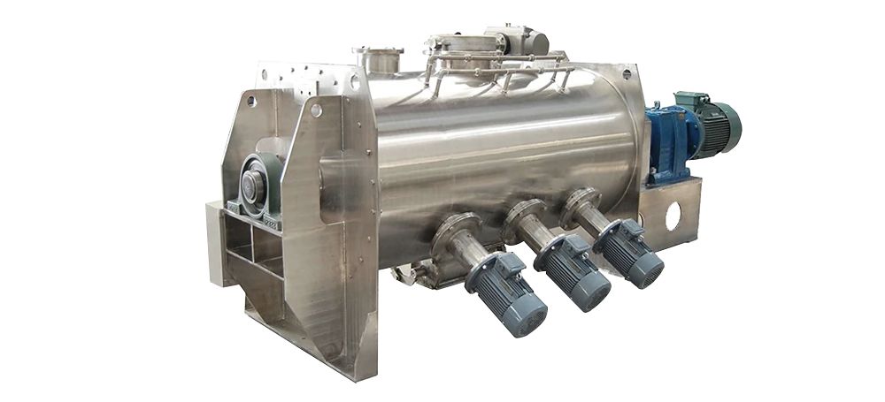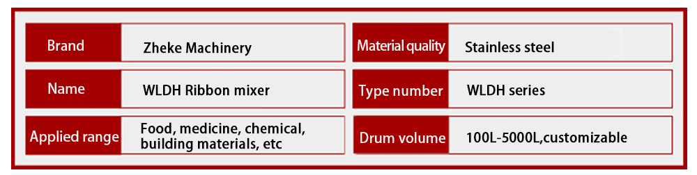 The helical ribbon mixer is a highly efficient, safe and reliable stirring equipment, mainly used for the mixing of various powder or semi-fluid materials. It achieves rapid and uniform mixing of materials through the forced shearing and diffusion effects generated during the rotation of the helical ribbon blades. This equipment features simple operation and high uniformity of mixing, and is widely used in industries such as food, chemical engineering, medicine, and building materials. The volume of the material bucket ranges from 100L to 5000L, and it can be customized and produced according to the customer's requirements.