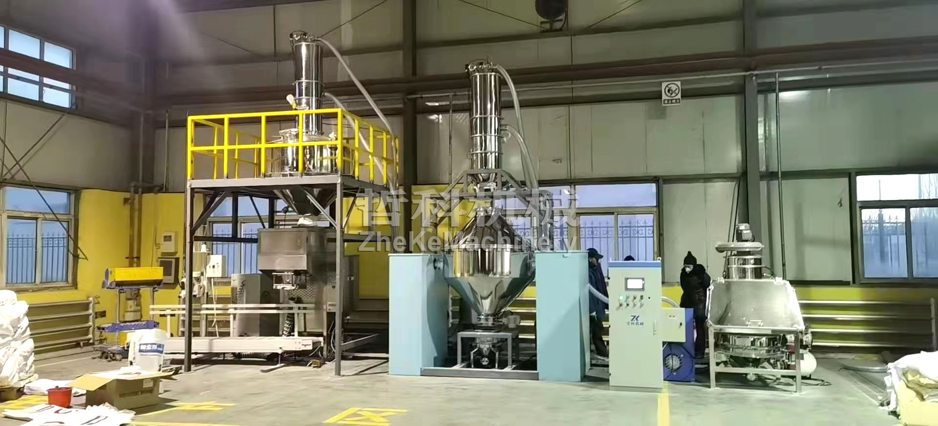 整個生產線,投料時需人工進行投料,其余過程全部實現(xiàn)自動化,混合機進料、出料采用自動對接形式,且保持密封,實現(xiàn)無塵化,杜絕粉塵飛揚,提供良好生產環(huán)境。