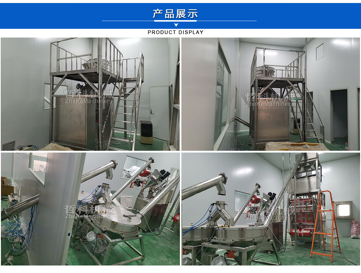 4:出料:下對(duì)接系統(tǒng)對(duì)接好,形成封閉通道,物料自動(dòng)流入下方螺旋輸送機(jī),輸送至后方包裝機(jī)進(jìn)行包裝。