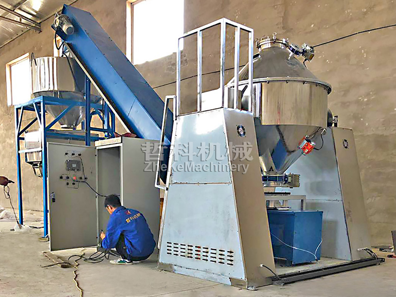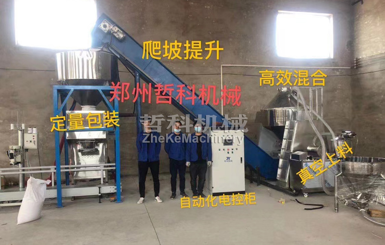 1. Feeding: This scheme uses a vacuum conveyor for feeding, installs the vacuum feeding interface to the mixer, opens the vacuum conveyor, and then puts the material into the hopper of the vacuum conveyor, and the material will automatically be sucked into the mixing machine's bucket;