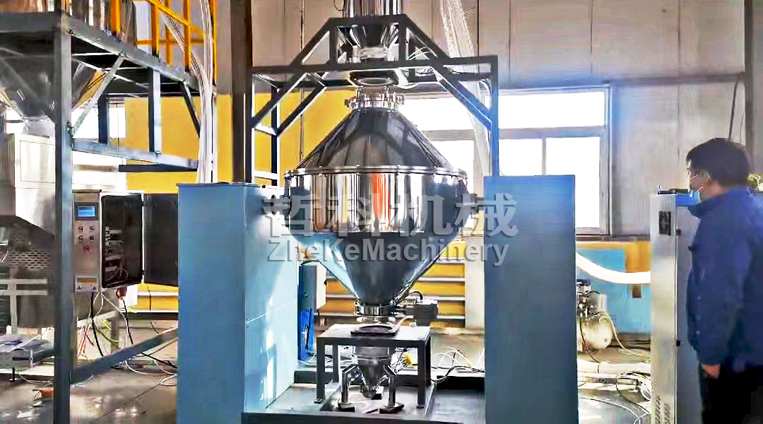 2, feeding: start the dust-free feeding station, manually pour the material into the feeding port, the material automatically into the mixer interior.